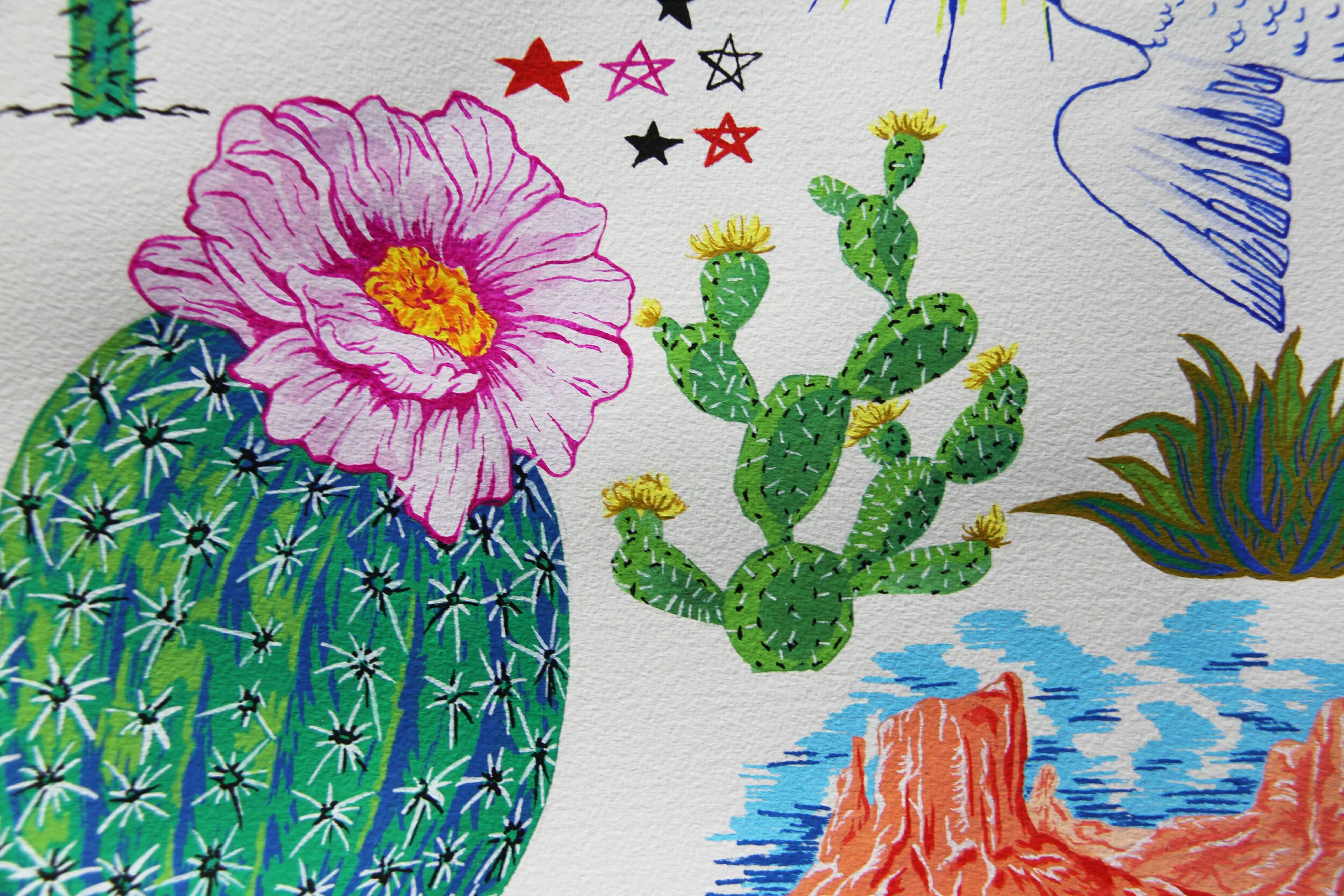 All preliminary paintings were hand painted by me in Acryla gouache and scanned and manipulated in Photoshop to create this collection.